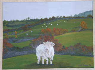 De herfst is hier een prachtig seizoen! Eén van mijn favorietjes! Met zijn prachtig gekleurde landschappen. Erg leuk om te schilderen, dat o zo verschillende kleurenpallet! En dan hier en daar nog die witte stipjes van de koeien verspreidt over de heuvels! I love it!